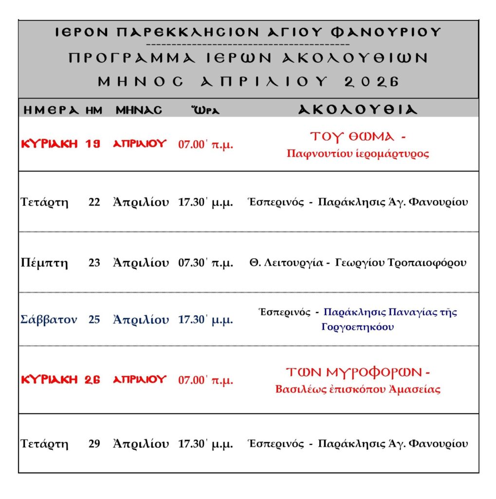 ΠΡΟΓΡΑΜΜΑ ΙΕΡΩΝ ΑΚΟΛΟΥΘΙΩΝ